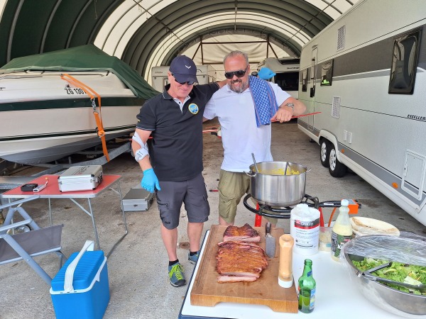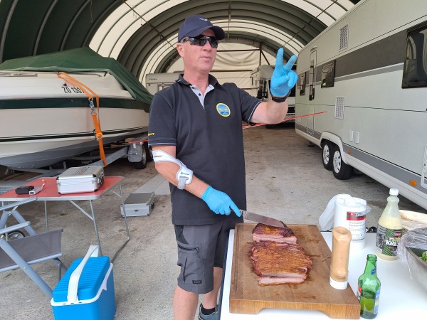 Thomas und Oli haben uns über den Mittag kulinarisch verwöhnt. Thomas mit seinem köstlichen Risotto und Oli mit einem Brisket (die KI hat mir aus der Patsche geholfen und gemeint: Brisket ist wirklich ein faszinierendes Stück Fleisch – besonders, wenn es stundenlang im Smoker liegt und diese butterzarte Konsistenz bekommt). Boah, genau so war es!